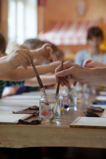 An den Tischen können die Kinder mit Wachsmalkreiden malen, mit farbigem Bienenwachs kneten, und auch die Webrahmen werden gern herbeigeholt. An der Werkbank wird gehämmert, genagelt, geraspelt und gesägt, und wenn es darum geht, das gemeinsame Frühstück vorzubereiten oder zu backen, sind die Kinder nur zu gern tüchtige Helfer.